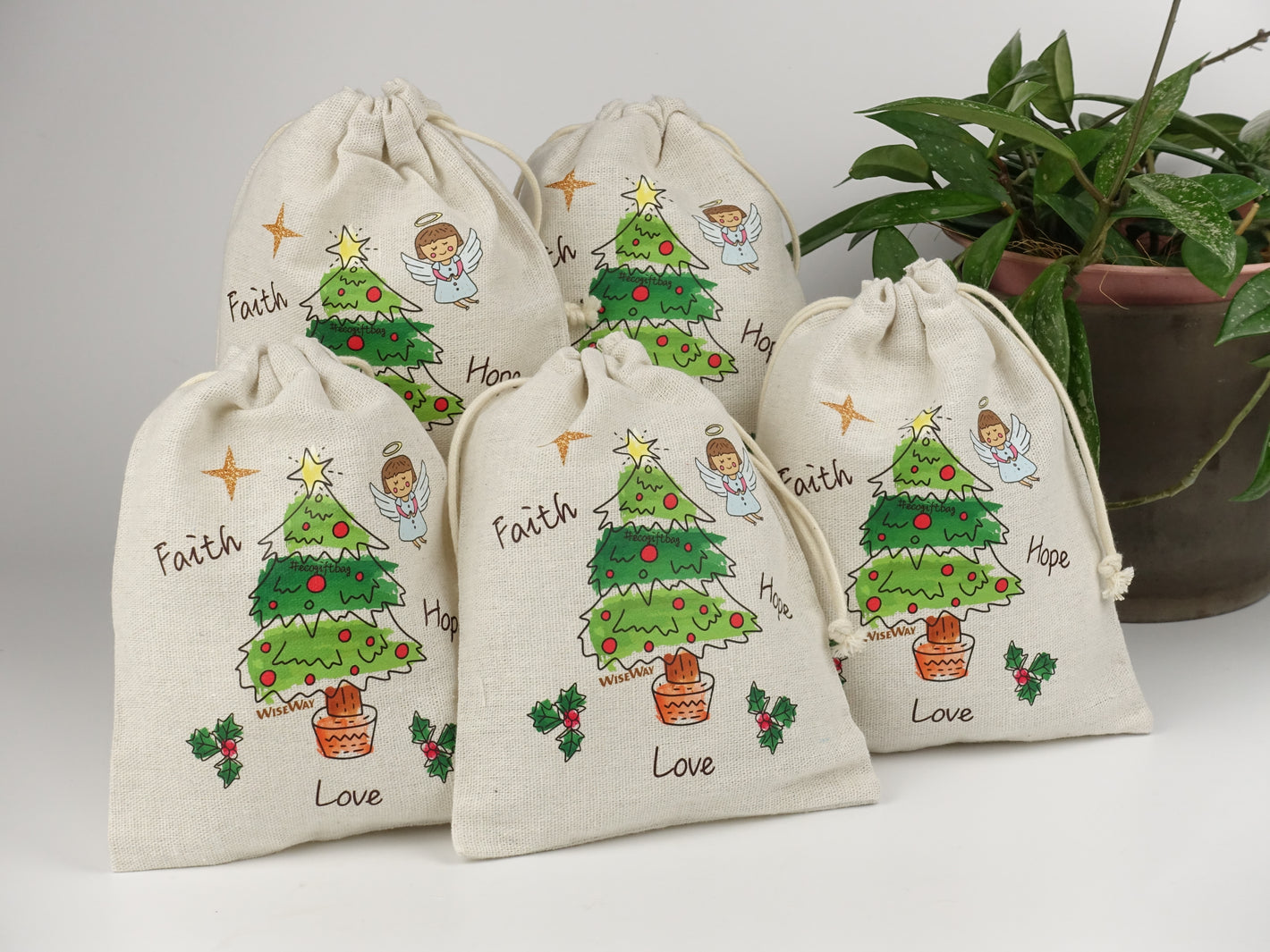 手工棉麻環保禮物袋 - 中號(5個裝)